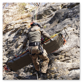 Am 31. Mai übten zwei unserer Mitglieder das Abseilen für den initialten Patientenkontakt am einfach Strang mit HMS-Knoten, Abseilachter, Tube und Abseilgerät und das Verbringen der UT2000 im Gelände. Die UT2000 [UniversalTrage2000] ist eine, speziell für die Rettung im Gebirge, entwickelte Trage aus zwei Halbschalen. Jede Halbschale kann einzeln als Rückentragegestell für schwere Lasten und Rucksäcke genutzt werden. Zusammengekoppelt kann sie als Gebirgstrage für horizontale und vertikale Verbringung genutzt werden oder als Akja (Trage mit Schlittenfunktion) im alpinen Gelände. Des weiteren ist die UT2000 voll umfänglich für die Luftrettung zugelassen. Die Erprobung endete mit vollem Erfolg und die UT2000 wurde für uns klar zum primären Arbeitsgerät für zukünftige Einsätze. [31.05.2023]