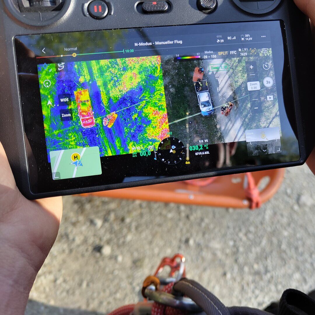Bei einer Übung im Mittelgebirge konnten wir mit der Mavic 3T innerhalb weniger Minuten eine vermisste Person simuliert in einem Waldstück lokalisieren. Dank der Wärmebildkamera und des leistungsstarken Zooms wurde das Suchgebiet gezielt eingegrenzt, ohne das Team unnötig zu belasten. Die exakte Position wurde per RTK dokumentiert und direkt an die Rettungskräfte übergeben.