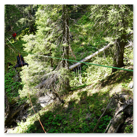 Eine Material- oder Personenseilbahn kommt immer dann zum Einsatz, wenn Lasten oder Personen sicher über unwegsames, steiles oder absturzgefährdetes Gelände transportiert werden müssen – etwa über Schluchten, steile Hänge oder bei fehlender Möglichkeit zum direkten Zugang.